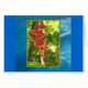 The fabulous heliconia plant looks almost unreal, even in its natural surroundings in balmy tropical forests. This one happens to live outside of Nassau, in the Bahamas. We've placed it on a background of turquoise Caribbean waters, making it the perfect greeting card, postcard, fridge magnet or gift item.