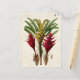 Postcard with a digitally cleaned and enhanced vintage image of a red heliconia plant and flowers on a parchment background. Illustrated by Etienne Denisse for Flore d'Amerique, published in Paris, 1843.