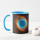 The blue-green glow in the centre of the Helix comes from oxygen atoms shining under effects of the intense ultraviolet radiation of the 120 000 degree Celsius central star and the hot gas.