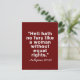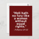 Postcard design with sarcastic protest quote to the overturning of Roe v. Wade. ""Hell hath no fury like a woman without equal rights." - Fallopians 20:22 White text on red background