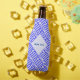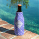Bottle cooler featuring the Greek flag and the word, HELLAS, below in blue, tiled diagonally for an artistic look.. The flag shows blue and white stripes with a blue and white cross in the upper right area. A white fractal of squiggly squares holds a spot for a name to personalise the bottle cooler or create a customised gift. Fun for Greek family reunions and travel groups. Great for celebrating Oxi Day.