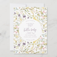 Hello Baby Blue Wildflower Botanical Baby Shower Invitation