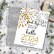 Hello 2025 Gold Glitter Festive Fireworks New Year Holiday Card