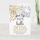 Hello 2025 Gold Glitter Festive Fireworks New Year Holiday Card