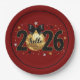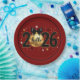 Hello 2026 Red Glitter Sparkle Design Paper Plate