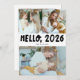 Whimsical and modern New Year's photo template card featuring a typography text that says "Hello, 2026" with 3 of your pictures. You can add another picture and a message on the back of the card.