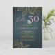 Luxury elegant vintage inspired 30th birthday party invitation template featuring gold leaves foliage, a little pink peony bouquet and faux gold typography script on a dark midnight blue antique distressed chalkboard background. ----- The invite is suitable for all seasons classy milestones birthday parties - thirty, forty, fifty, sixty, seventy, eighty, ninety, hundred - or other anniversary celebrations. ++++++++++++ It is fully editable and easy to personalise with your details!