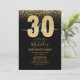 Hello 30! Invite your friends and family to celebrate the 30th birthday with this modern design. The design features a black background, the numbers thirty in faux gold glitter, with an elegant glitter gold background, elegant calligraphy, a modern birthday template that is easy to customize, and the option to add a photo on the reverse. Don't think twice and get yours now.