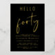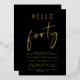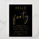 Elevate your 40th birthday party with this chic black invitation featuring "hello forty" in a blend of a simple font and a stylish script, your name in elegant serif typography and the party details in modern lettering, all rendered in your choice of genuine gold, silver foil or rose gold foil.