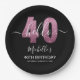Hello 40! Modern 40th birthday with Pink glitter Paper Plate