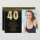 Hello 40! Invite your friends and family to celebrate the 40th birthday with this modern design. The design features a black background, the numbers thirty in faux pink glitter, with an elegant pink glitter background, elegant calligraphy script, a modern birthday template that's easy to personalize, and the option to add a photo to the reverse. Don't think about it and get yours now.
