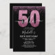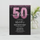 Hello 50! Invite your friends and family to celebrate the 50th birthday with this modern design. The design features a black background, the numbers thirty in faux pink glitter, with an elegant pink glitter background, elegant calligraphy script, a modern birthday template that's easy to personalize, and the option to add a photo to the reverse. Don't think about it and get yours now.