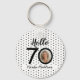 Add a personal and polished touch to the 70th birthday celebration with the custom keychain featuring a bold "Hello 70" design, black and white polka dots, and a photo of the guest of honour. Personalise with a name and photo to make your milestone event truly unforgettable.