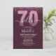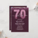 Hello 70! Invite your friends and family to celebrate the 70th birthday with this modern design. The design features a black background, the numbers thirty in faux pink glitter, with an elegant pink glitter background, elegant calligraphy script, a modern birthday template that's easy to personalize, and the option to add a photo to the reverse. Don't think about it and get yours now.