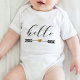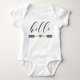 Welcome your little one into the world with this adorable "Hello" arrow with heart baby bodysuit. The design features a cute arrow and heart graphic with the word "Hello" in playful, modern script. This baby bodysuit makes a thoughtful and practical gift for new parents. To further customise this template, you can click on "Personalise This Template" and then select "Edit Using Design Tool". This will enable you to add or delete any text, change the font style, size, and colour, and reposition the text and pattern as desired. baby bodysuit, hello baby, hello, arrow design, heart, new baby gift, script, cute, infant clothing, baby clothes, newborn outfit, baby shower present, baby shower gift, gender-neutral, comfortable baby clothes, Zazzle.