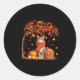 Hello Autumn Cat Fall Leaf Kitten Lover Thanksgivi Classic Round Sticker