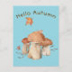 Hello Autumn Dry Leaf Mushroom Watercolor Postcard