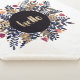 The illustration is made with watercolors and gouache on paper. Indigo, ochre and orange foliage and flowers with a hand written golden hello in the middle.