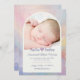 Our pretty pastel birth announcement for a newborn baby girl features a stylish arch-shaped photo on the front and a three-photo collage on the back. This whimsical, girly, and functional design includes a cute little heart and sweet text saying "hello baby." Personalise it with your baby's name and birth stats to create a classic and pretty announcement. The pastel purple, blue, and pink colour scheme makes this perfect for your new little princess. This announcement is perfect for sharing your joy in a beautiful way.