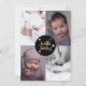 Hello Baby Gold Photo Collage Baby Birth Announcement is an elegant design that comes with a collage of four vertical photos on the front, a black circle, and hello baby typography in gold. The back has a single photo and all the text templates to introduce your baby.