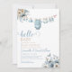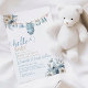 Hello Baby Blue Flower Butterfly Baby Shower Invitation