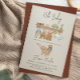 Celebrate the joy of impending parenthood with our rustic neutral bohemian baby shower invitation, adorned with delightful nursery illustrations. From charming bassinets and baby carts to sweet baby clothes, teddy bears, soft toys, and wooden playthings, this invitation captures the essence of anticipation. The watercolor design in natural earth tones and muted colours adds a touch of warmth, creating an inviting and whimsical atmosphere for your baby shower celebration.