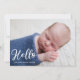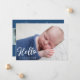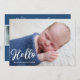 Hello Baby Boy Photo Simple Script Blue Birth Announcement