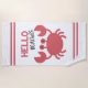 NewParkLane _ Cute beach towel, with a big red crab cartoon and funny quote ' Hello Beaches' in a fun bold handwritten typography.
