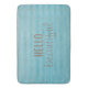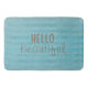Chic And Trendy Striped Boho | Large Bath Mat: This beautiful bohemian style bath mat features a teal blue brown striped pattern design with handwritten typography reading "Hello Beautiful". Certainly unique and perfect for home or dorm room! You can mix and match from other products in this collection.