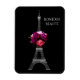 Bonjour Beauté Magnet Eiffel Tower Shimmering in Silver, Adorned with Pink and Purple Peonies.