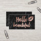Hello beautiful lips rose gold script black marble business card