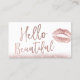 Hello Beautiful Makeup Artist Rose Gold Typography Business Card