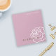 The product design features a simple large rose illustration in retro pink and white. This elegant botanic design makes modern chic and unique notepads with personalised text.