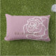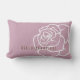 The product design features a simple large rose illustration in retro pink and white. This elegant botanic design makes a modern and unique outdoor lumbar pillow with personalised text. Gift idea for her birthday, wedding bridesmaid, Mother’s Day, and more!