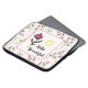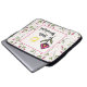 A laptop sleeve with a square frame and a pink border, inside it says "Hello Beautiful" written in a trendy font with a doodled yellow sun above the text. Also a pretty pink, long stem flower with green leaves off to the side. The backdrop is a seamless pattern with hand drawn pink wildflowers with long green stems and leaves on a eggshell white coloured background. Pink circles and sprigs also decorate the design. Cute and pretty floral design.