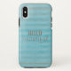 Hello Beautiful Quote Boho Striped Pattern Phone Case. Bohemian Hello Beautiful Quote Striped Pattern On iPhone X Case. Typography with teal blue and stripes. Design by Bohemian Girl.