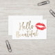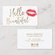 Hello Beautiful Makeup Artist Gold Typography Red Lips Print Business Cards.