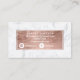 An elegant modern, stylish custom logo hello beautiful business card with elegant script lettering style typography in faux rose gold foil on a trendy and elegant white marble background.