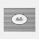 Enjoy our “hello” black and white stripe doormat to welcome your guests.