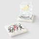 The coasters are gorgeous, a quality feel and heavy weight. They look like a precious archeological find. A rustic stone juxtaposed with a modern floral black and white print. I like the way the print goes slightly imperfect on the cut stone edges giving them a kind-of natural beauty.