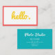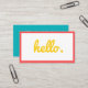 bright colourful bold hello text urban retro design with a blue outline. You can customise the text and other features including the shape and size.
