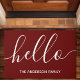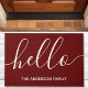 Hello Calligraphy Script Modern Burgundy Personalised Doormat