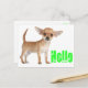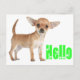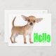 Aww...who can resist the sweet face of a Chihuahua puppy dog? This fun postcard features an image of a Chihuahua puppy dog with huge ears highlighted against a crisp white background with a lime green hello greeting in a cute heart font.