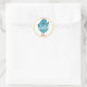Friendly blue shaggy furry monster greets you with a big hello. Click on “Personalise this template” to add a name. Choose from square or round stickers and matte or glossy finish.