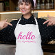 Cute, heavy duty apron with wide front pocket. Light to wear and easy slip on and off. Shorter length perfect for my 5 ft frame. I love it! Wording and print looks good with clear borders. Stitching is good, nicely finished.