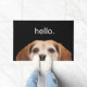 Welcome your guests to your home with a cute and funny photo of JoDog the Smiling Beagle spying on you and the simple word, "hello." on a black background. Great gift for the dog or animal lover or as a housewarming gift. Photograph of JoDog and design © by TK Goforth, all rights reserved.