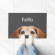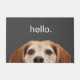 Welcome your guests to your home with a cute and funny photo of JoDog the Smiling Beagle spying on you and the simple word, "hello." on a dark grey background. Great gift for the dog or animal lover or as a housewarming gift. Photograph of JoDog and design © by TK Goforth, all rights reserved.
