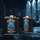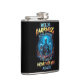 Hello Darkness My Old Friend Flask. © Dark Heart Desires. This flask has a colourful design on it with a skeleton holding two drinks.
