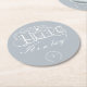 Hello decorative script baby shower dusty blue round paper coaster