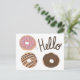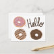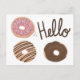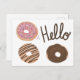 Three colourful doughnuts create a cheerful, fun "Hello" postcard to send to friends, old and new.
